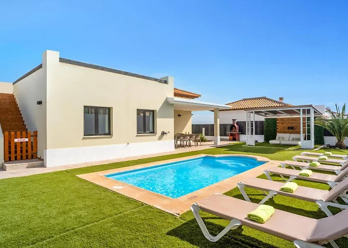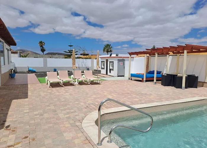 Featuring a private swimming pool, a hot tub, Vip Villas - Caleta Dorada Caleta De Fuste invites guests to enjoy Playa del Castillo, located 550 metres away. The villa is situated 2.7 km from Golf Club Salinas de Antigua and provides a comfortable stay with parking, currency exchange and a tour desk.